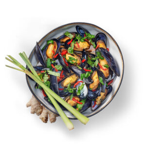 Zin in mosselen met een lekkere smaak, maar niet om lang in de keuken te staan? Deze Ready-to-eat Bangkok mosselen staan binnen 3 minuten op tafel. Combineer ze eens met gebakken rijst of met noodles, of kijk eens bij onze recepten voor inspiratie.